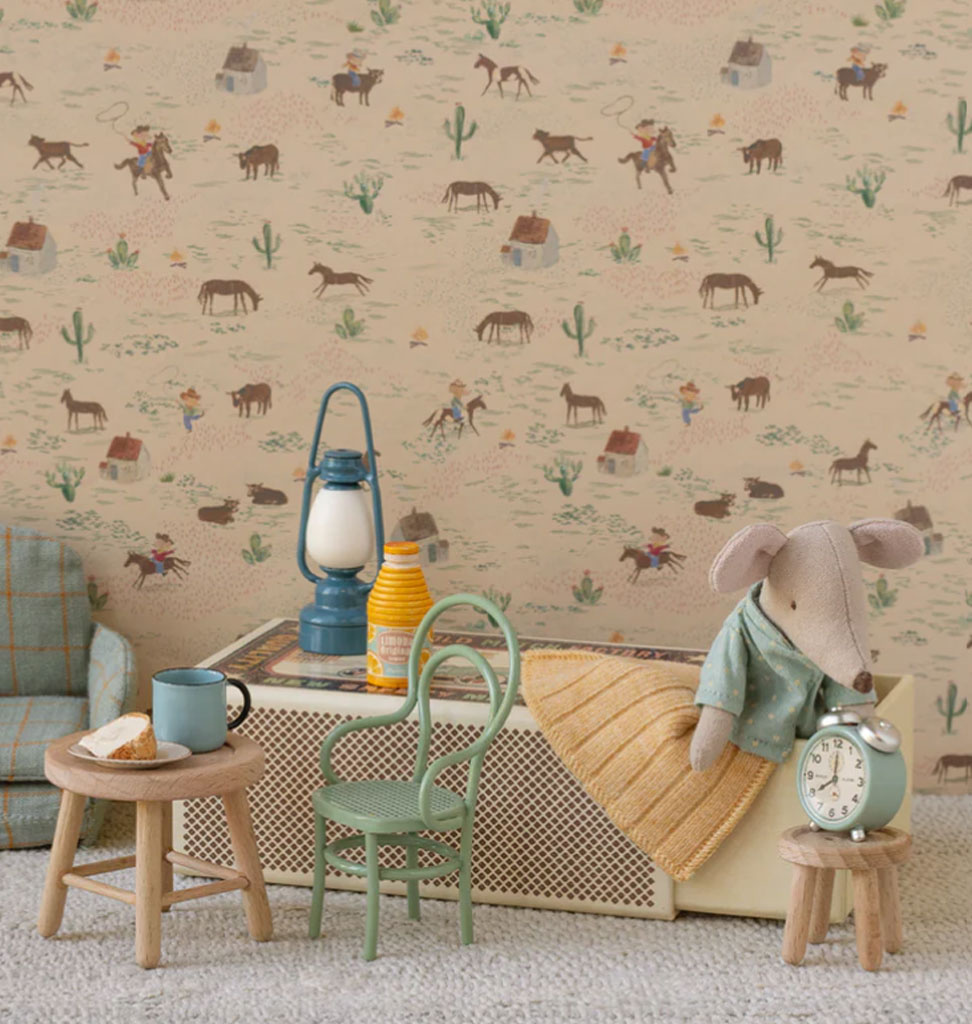 Yeehaw................ Stoer Maileg cowboymuisje met hobbelpaard