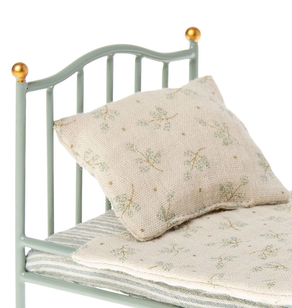 Design: vintage bed mint Designer: Maileg Denemarken Gemaakt van metaal en geschikt vanaf 3 jaar. Afmetingen: hoogte 9 cm, breedte 8 cm, diepte 12.5 cm Artikelnummer: 11-5139-00